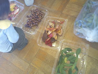| 内容 | 遠足で集めた大きなドングリと、葉っぱで遊びました ◎ |